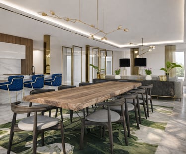 Chong Chalearn Thai restaurant in New York City features 68 seats. This design concept marries elevated Thai cultural motifs with refined contemporary luxury. The space is envisioned as a modern interpretation of classic Thai hospitality—warm, atmospheric, and deeply rooted in craftsmanship—while exuding the sophistication expected of a high-end dining destination. The restaurant embodies an intimate, moody, and cinematic ambiance, achieved through low-level architectural lighting, warm color temperatures, and layered textures. The design subtly references vintage Thai shophouses, aristocratic craftsmanship, and nostalgic Asian cafés, all while enhancing them with a premium material palette. This palette balances dark, rich tones with warm, natural textures and soft golden lights. Walnut wood and teak-inspired finishes anchor the space, adding depth and cultural warmth. Intricate monochrome-patterned floor tiles introduce a graphic rhythm reminiscent of old Bangkok terraces. Furniture featuring rattan and cane details, along with classic Thai materials used in chair backs and wall detailing, introduces subtle cultural notes while maintaining a premium feel. Upholstery in soft beige, muted sage, and charcoal tones enhances comfort and sophistication. Notable features that make Chong Charoen a unique Thai restaurant include its signature design element—two large circular wall panels adorned with Thai bird-and-floral motifs. These panels serve as a dramatic focal point and are backlit with warm cove lighting, evoking traditional Thai silk painting and framing the dining area with cultural elegance. Above the banquette area, a curated cluster of colorful, fabric-shaded hanging pendants floats, their shapes and fringes reminiscent of retro Thai charm, lending the room personality and nostalgic warmth while softening its acoustics. The bar counter, wrapped in luxurious hand-glazed ceramic tiles in sage green, becomes a central visual anchor. Combined with walnut shelving and warm lighting, it offers a refined, contemporary twist on traditional Thai craftsmanship. Lattice wood panels and vertical wood-grain elements reference Thai architectural joinery, creating a sense of enclosure while allowing light to pass through subtly. Guests are welcomed by warm wood tones, vintage Thai charm, and a cinematic lighting gradient that immediately conveys a sense of exclusivity. A blend of communal tables, soft banquettes, and intimate nooks creates a dynamic yet comfortable dining environment. Large illuminated murals draw the eye and build a sense of Thai artistry reinterpreted for the modern era. A luxurious yet approachable bar area encourages pre-dinner cocktails and late-night drinking culture, and its material palette reinforces the restaurant’s premium positioning.